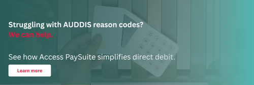 - AUDDIS codes - problems setting up a Direct Debit Instruction (the mandate). You’ll see these on the bank‑rejected DDI report.